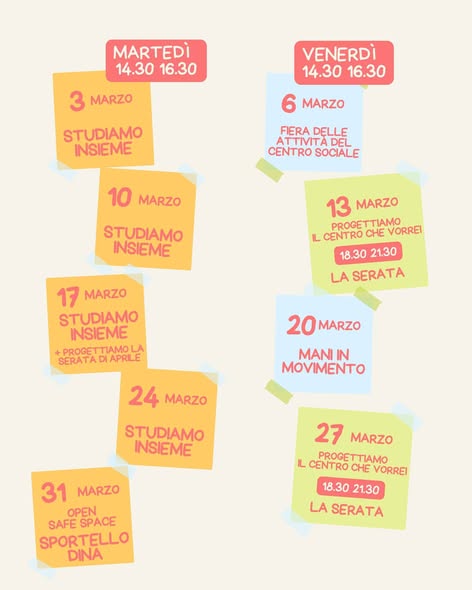 A Officina continuano le attività per incontrarsi, studiare insieme, progettare idee e passare qualche serata in compagnia. A marzo il calendario è pieno di proposte pensate per stare bene insieme e costruire uno spazio condiviso e unico.